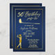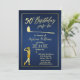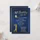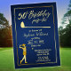 Invitación Clásico de Golf Mujer Dorada Azul 50 cumpleaños