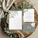 Clásica Invitación a la Boda Elegante con flores de marfil acuáticas y vegetación con un borde de oliva.