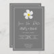 Un diseño sencillo y moderno con una flor simbólica, escritura blanca y un contorno blanco sobre gris. El reverso tiene todos los detalles del boda, personaliza la parte delantera y de vuelta a los detalles de su día especial. Una mirada clásica a un asunto formal. Estilo de coincidencia en Bridal Shower, RSVP, Save the Date y más. La flor hawaiana de Lei, Plumeria es un símbolo de "nuevos comienzos".