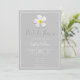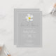 Un diseño sencillo y moderno con una flor simbólica, escritura blanca y un contorno blanco sobre gris claro. El reverso tiene todos los detalles del boda, personaliza la parte delantera y de vuelta a los detalles de su día especial. Una mirada clásica a un asunto formal. Estilo de coincidencia en Bridal Shower, RSVP, Save the Date y más. La flor hawaiana de Lei, Plumeria es un símbolo de "nuevos comienzos".