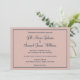 Un diseño elegante, con colores polvorientos rosa y azul, ideal para tu boda. Con un fondo rosado polvoriento, su información se encuentra dentro de un marco azul oscuro. El texto también está escrito en este color azul complementario. ¡Personalice hoy estas invitaciones de boda!