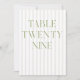 Este elegante número de tabla presenta un suave fondo rayado beige con una tipografía serif verde sabio refinada y acentos de escritura sutiles. Diseñado para bodas en el jardín, refinadas recepciones y atemporales celebraciones al aire libre. Coordina con la colección de invitaciones a bodas "Iris": haga clic en el vínculo de colección de esta página para buscar elementos coincidentes como menús, invitaciones, carteles y más. Nota: esta plantilla no es editable. Para encontrar otros números de tabla en esta serie, visite la página de colección completa. ・ Se crearon maquetas para este diseño usando Midtrip AI.