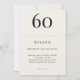 Classic black and soft ivory minimalist birthday invitation with elegant typography for a 60th celebration. Name age date time location and RSVP are fully customizable to suit formal or black tie adult events.