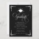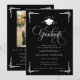 Celebrate a remarkable academic milestone with this classic black and white graduation invitation, designed with timeless elegance and formal sophistication. Featuring ornate script typography, decorative corner accents, and a graduation cap emblem, this invitation makes a striking statement for a high school or college graduate.