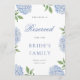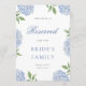 Invitación Classic Blue Hydrangea Border Reserved Row Card