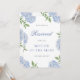 Invitación Classic Blue Hydrangea Wedding Reserved Seat Card