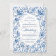 Make a refined first impression with this wedding invitation featuring classic French toile de jouy roses in elegant shades of navy blue, royal blue, dusty blue, and deep blue. Inspired by timeless European floral design, this invitation blends traditional sophistication with modern elegance, perfect for a classic, romantic, or formal wedding celebration.
