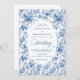 Invitación Classic Blue Toile de Jouy Roses Timeless Wedding