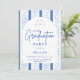 An elegant graduation celebration design featuring a delicate blue toile floral border inspired by classic European porcelain and vintage botanical prints. The intricate florals frame a clean arched center panel, creating a refined and timeless composition that highlights the graduate’s name and event details beautifully. Soft blue tones against a crisp ivory background give the design a sophisticated yet celebratory feel. Perfect for a stylish graduation gathering with a classic, romantic aesthetic.