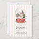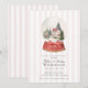 Transport your guests to a winter wonderland with this enchanting vintage snow globe Christmas party invitation. The delicate watercolor illustration features a cozy, snow-dusted cottage nestled amongst pine trees, all encased within a shimmering snow globe adorned with a charming red plaid bow. The soft, pastel pink and white striped background evokes a sense of gentle snowfall and festive cheer, making it the perfect way to invite loved ones to your annual holiday celebration. Share the magic of the season and create lasting memories with this beautifully designed invitation that captures the nostalgic spirit of Christmas.