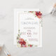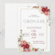 Watercolor-style floral arrangements frame the text, positioned in the top-right and bottom-left corners. The flowers feature a rich palette of deep burgundy, soft pink, coral, white, and lavender, accented by green foliage.