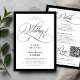 Elegant formal black and white wedding invitation with border frame, classy calligraphy script, and QR code (automatically generated with your website address) to RSVP online. ++++++++++++++ Easy to personalize with your ceremony and reception guest information details. Timeless simple minimalist budget affordable all in one classic weddinig invite.