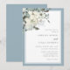 Classic Elegant Dusty Blue Wedding Invitation featuring watercolour ivory flowers and greenery.
