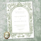 Announce your special day with an elegant traditional wedding invitation featuring a detailed, vintage-style engraving arched frame border of florals in soft sage green. Perfect for a formal ceremony or an affair with a classic, timeless aesthetic. This refined design offers an opulent look. Created by Simply Farmhouse Press.