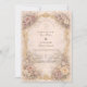 This luxurious wedding design features a soft antique ivory background framed by romantic blush roses, delicate greenery, and ornate baroque gold detailing. Inspired by classic European elegance, the composition feels refined, timeless, and opulent, with flowing florals and sculpted gold accents that create a graceful, romantic atmosphere. Perfect for couples drawn to vintage charm, old-world luxury, and an elevated, elegant wedding aesthetic.