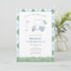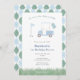 Classic with a twist light blue and sage green golf-themed first birthday par-tee invitation fdesign eatures a hand-painted golf buggy with balloons and a tee flag with space for a number. All watercolor elements were hand painted by me before being scanned into digital form. The reverse of the invitation is a light blue and sage green argyle pattern, created digitally by me.