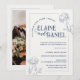 The graceful arched text design and simple floral illustrations create a sophisticated look ideal for classic church weddings, formal hotel receptions, and modern city celebrations. The coordinating back includes a customizable photo area, allowing you to add your favorite engagement or wedding portrait for a personal finish.