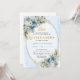 Ideal for classic, modern, garden, or elegant Quinceañera themes, this invitation combines delicate blue hues with warm gold details to achieve a look that feels both sophisticated and youthful. The greenery and eucalyptus bring freshness and balance, while the gold accents add just the right amount of sparkle for a meaningful 15th birthday celebration. Whether you are planning a formal Quinceañera, a traditional fiesta, or an intimate family gathering, this invitation sets a beautiful and memorable tone.