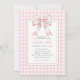 Invitación Classic Pink Bow Gingham Chica Baby Shower