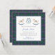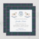 A timeless baby shower invitation for a mom who values tradition and heritage. This winter-theme baby shower invite card design features a simple monogram crest with ribbon bow trim flanked on either side by a wooden rocking horse. All watercolor elements were painted by me onto 100% cotton paper and scanned into digital form. The border and reverse feature a classic blue green and red tartan pattern, created digitally by me.