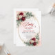 Celebrate a special upcoming arrival with this boho baby shower invitation featuring rich burgundy, deep red, marsala, and maroon watercolor peonies, accented with soft eucalyptus greenery and elegant gold details. This warm, romantic color palette creates a stylish and inviting look, perfect for bohemian, rustic, or modern baby shower themes.