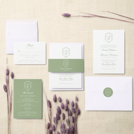 Elegant and timeless, this Classic Sage Green Floral Monogram Crest Wedding Invitation showcases a delicate floral crest and refined script typography in real sage green, creating a sophisticated and romantic look ideal for classic, formal, and garden-inspired weddings, while seamlessly coordinating with the Classic Formal Real Sage Green Wedding Suite for a cohesive celebration aesthetic.