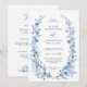 This elegant botanical winter wedding invitation with details on back features soft dusty blue florals arranged in a delicate wreath, creating a timeless and romantic look. Inspired by vintage botanical illustrations and icy winter tones, this classic design is perfect for winter weddings, formal celebrations, and elegant seasonal ceremonies. The refined typography pairs beautifully with the cool blue palette, making it ideal for traditional, garden-inspired, or vintage winter weddings. Easily personalize with your wedding details for a polished and sophisticated invitation your guests will love.