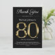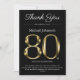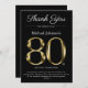 Invitación Classy Black and Gold 80th Birthday Thank You Card