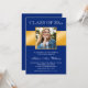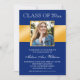 Invitación Classy Blue Gold Photo Graduation