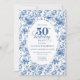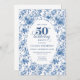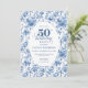 Invitación Classy Blue Toile de Jouy Floral 50th Birthday