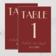 Invitación Classy Deep Red Cream Fancy Wedding Table Number