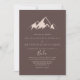 Esta clara invitación a boda en boda española, en un país montañés, es perfecta para un boda rústico. El diseño presenta una idílica montaña color beige acuático.