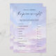 Prepárese para elevar la emoción de su ducha de novia con nuestra tarjeta de juego On Cloud 9 Adivinar el precio correcto de la ducha de novia. Este interesante juego hará que sus invitados adivinen el precio correcto y se den una explosión mientras lo hacen. Sumérjase en la atmósfera de ensueño de una ducha nubosa con temas de Nube 9 mientras se reúne para jugar este juego delicioso. El fondo azul pastel, adornado con nubes blancas onduladas, crea un ambiente a la vez elegante y caprichoso. La caligrafía moderna y la tipografía limpia aportan un toque de sofisticación al diseño. ¿Qué tan bien pueden sus invitados estimar el coste de los diferentes artículos? Averigüe mientras compiten para adivinar la cantidad en dólares más cercana al total de todos los artículos en la tarjeta. Este entretenido giro en The Price es Correcto hará que todos se involucren y se rían juntos, creando recuerdos inolvidables. Haz que tu ducha de novia sea verdaderamente memorable con On Cloud 9 Adivina la tarjeta de juego de ducha de novia a buen precio. No es sólo un juego; es una experiencia que dejará a la novia, a sus amigos y a su familia en la nube nueve. Así que, que la diversión comience y vea quién tiene lo que se necesita para adivinar el precio!
