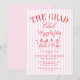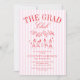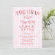 Celebre a su graduado con un estilo moderno y chic con estas elegantes invitaciones para la fiesta de graduación. Con un fondo a rayas rosadas y blancas, el diseño muestra el título en negrita "THE GRAD CLUB" junto con una ilustración divertida de graduados lanzando sus gorras al aire.