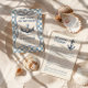 Este diseño de inspiración costera combina flores acuáticas con encantadores elementos náuticos como un delfín, una velera, una brújula, peces, estrellas de mar y gaviota. La elegante paleta marina y el suave estilo pintoresco crean una estética caprichosa de temática oceánica, perfecta para una celebración costera llena de encanto y aventura.