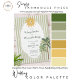 This whimsical coastal wedding invitation features a vintage sun motif, lace border, palm tree, and stylish sage green stripe background. Perfect for a beach or California destination wedding. Created by Simply Farmhouse Press.