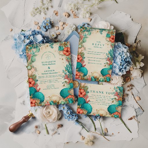 This romantic design draws inspiration from the Mediterranean coast, blending soft seashell details with muted botanicals and a vintage parchment background. Earthy neutrals, blush tones, and coastal textures create an old-world, seaside aesthetic that feels elegant, timeless, and effortlessly refined.