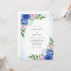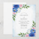 This design features a romantic watercolor palette of deep cobalt and royal blue roses contrasted with soft blush pink blossoms. Delicate green leaves and sprigs of white baby's breath surround the composition, creating an ethereal and airy atmosphere. Ideal for an elegant springtime or summer soirée, the artwork exudes a sense of timeless sophistication and natural beauty.