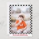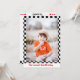 Auto de Carreras Dos invitaciones para fiestas de cumpleaños de niños lindos y rápidos con una carrera de autos rojos. Tema de carreras para un fiesta de segundo cumpleaños con un ilustracion de un auto rojo con las palabras "Crecer demasiado rápido".