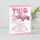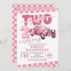 Coche de Carreras Chica Rosa Dos Invitación Rápida Dos Curiosas De Segundo Cumpleaños