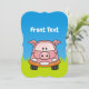 Coche de personalizado de cerdo sonriente sobre césped verde bajo cielo azul.