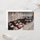 Invitación personalizada del 50 aniversario con la fotografía de coches rojos antiguos.