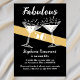 ¡Celebre con estilo con esta elegante invitación de cumpleaños número 50 para mujeres! Con un fondo negro, una franja diagonal dorada con el número 50 en letra vintage, y dos copas de cóctel que se cruzan, coronadas con “Fabuloso” en letra cursiva elegante. Los detalles de la fiesta son fáciles de leer en una fuente serif clásica. ¡Gracias por pasar por aquí—dale un like a este diseño si te gusta!