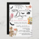Raise your glass and get ready to party with this fun Sips About to Go Down Halloween invitation. Illustrated with watercolor skeletons, spooky cocktails, cobwebs, and flying bats, this design perfectly balances eerie and playful for a stylish Halloween bash. The hand-lettered script and moody bar aesthetic make it ideal for adult gatherings or cocktail-themed parties.