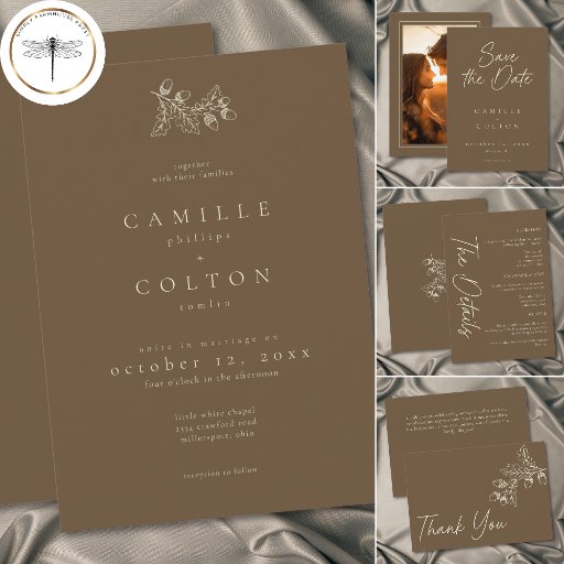 Cocoa Brown Minimalist Leaf Acorn Fall WeddingDiseñado por Kathe Santillo