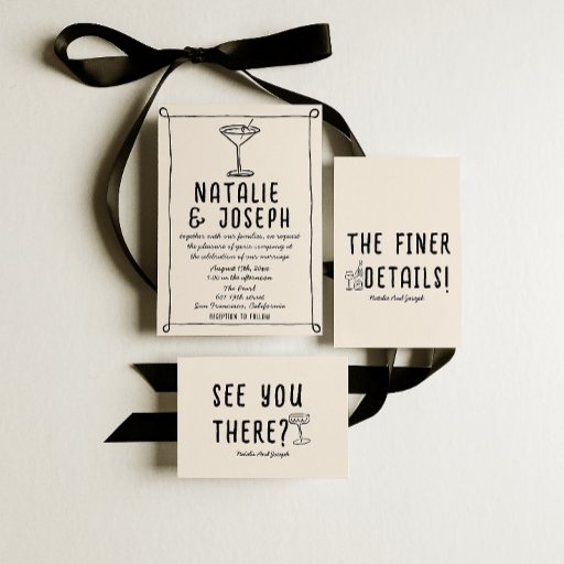 Invitación Cóctel de marco dibujado a mano retro todo en un B
