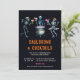 Una divertida, divertida pero elegante y moderna invitación a la fiesta de Halloween con un tema de calderos y cócteles, con tres esqueletos bailarines con cócteles parados alrededor del caldero de una bruja. Divertido y divertido, elegante, moderno, sencillo y elegante, para la mejor fiesta de Halloween que tu oficina haya visto.