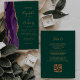 Invitación Código QR Agite de oro morado Boda verde esmeralda
