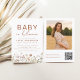 Celebra la llegada de un nuevo paquete de alegría con una hermosa ducha de bebé con temática Bloom. Únete a nosotros por una tarde llena de amor y felicidad mientras honramos a los futuros padres. La invitación incluye un impresionante texto naranja quemado en terracota, acentuado por una variedad de flores silvestres vibrantes.