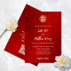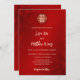 Esta tradicional invitación a la boda china presenta un símbolo de doble felicidad dorado sobre un fondo de brillantes ruby rojo floral. El elegante guión manuscrito le da al diseño un toque moderno. Puedes cambiar fácilmente la línea, que dice: "te invitas a la ceremonia de su boda" a "ceremonia del té". La invitación tiene un código qr escaneado en la parte trasera del sitio web de su boda.